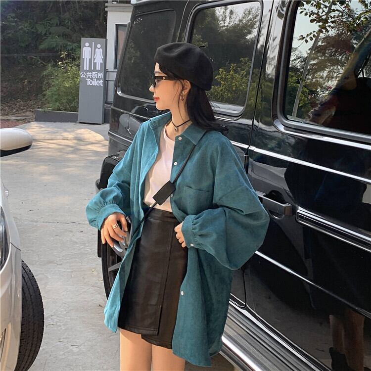 コーデュロイブルーシャツ